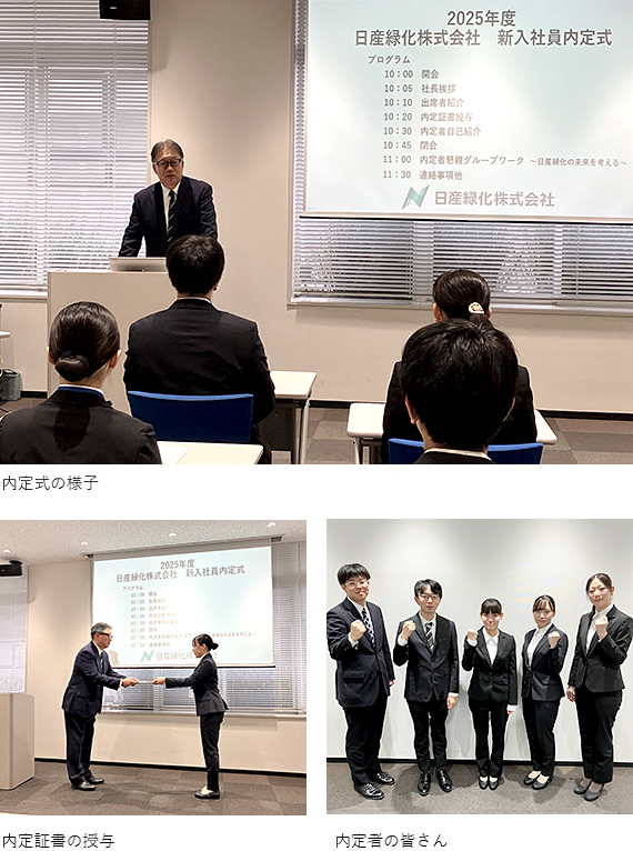 2025年度内定者5名の内定式を執り行いました。 内定式には中山雅人社長、役員、部長が出席し、内定者を歓迎しました。 中山社長から内定証書が授与され、内定した学生からは、入社にあたっての意気込みや熱意が語られました。 内定者の皆さん、来春から一緒に仕事ができるのを楽しみにしています!